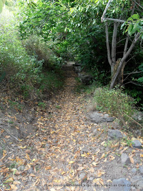 Después del último poste se llega a una pequeña bajada a la izquierda, a la derecha indica privado así que no hay confusión, por un primer tramo de escalones de cemento se llega a un sendero de tierra y por tramos empedrado, el Lomo de los Inciensos, que serpentea en suave descenso hasta Valsendero.
